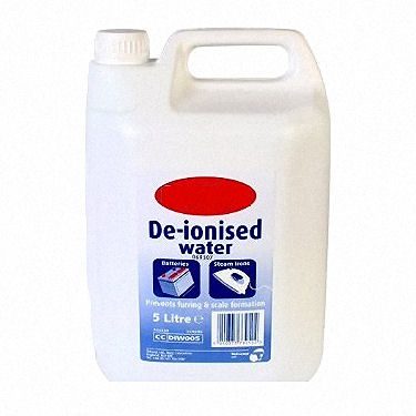 Demineralised/deionised water, ready to use, to prevent scale formation and limescale deposits.