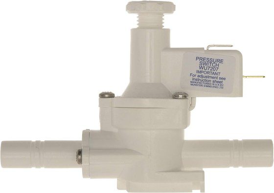 WHALE Grooved Pressure Switch. Switches the pump on or off by detecting the change in pressure in the water system. Fitted in-line, the Whale Pressure Switch provides a simple and convenient way of creating a pressure system with an electric pump that does not have its own switch. The Pressure Switch is normally fitted close to the pump on discharge side (before any in-line Y piece). The Pressure Switch detects the opening and closing of any tap in the system. An in-line filter is recommeded on the inlet side to prevent dirt from entering the pump or switch.